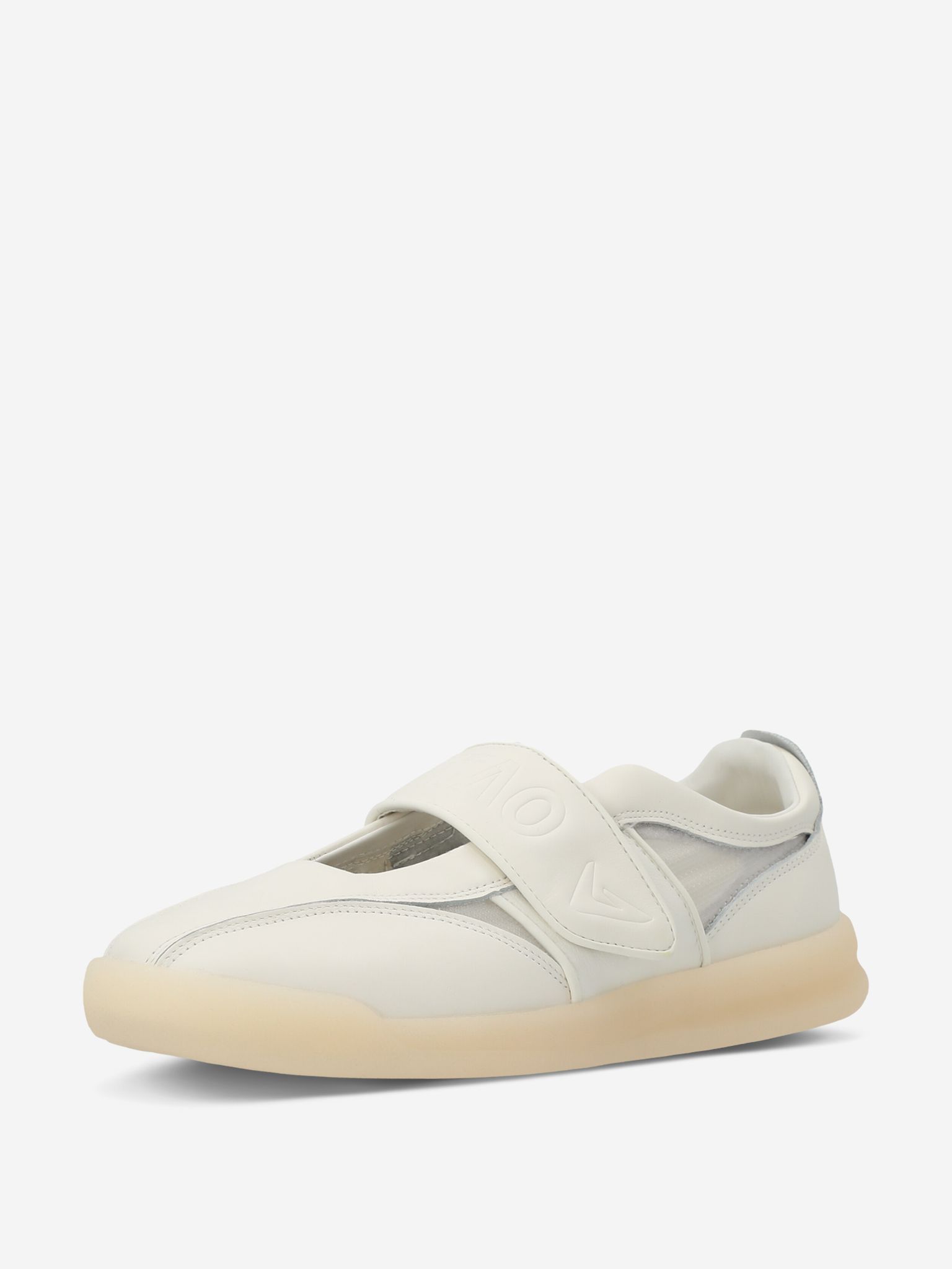 Женские балетки Demix x AYTLO. Верх и стелька из премиальной натуральной кожи, вставки из синтетической полупрозрачной сетки. Широкая липучка для быстрой фиксации, резиновая подошва с рисунком, отсылающим к футбольным моделям.
