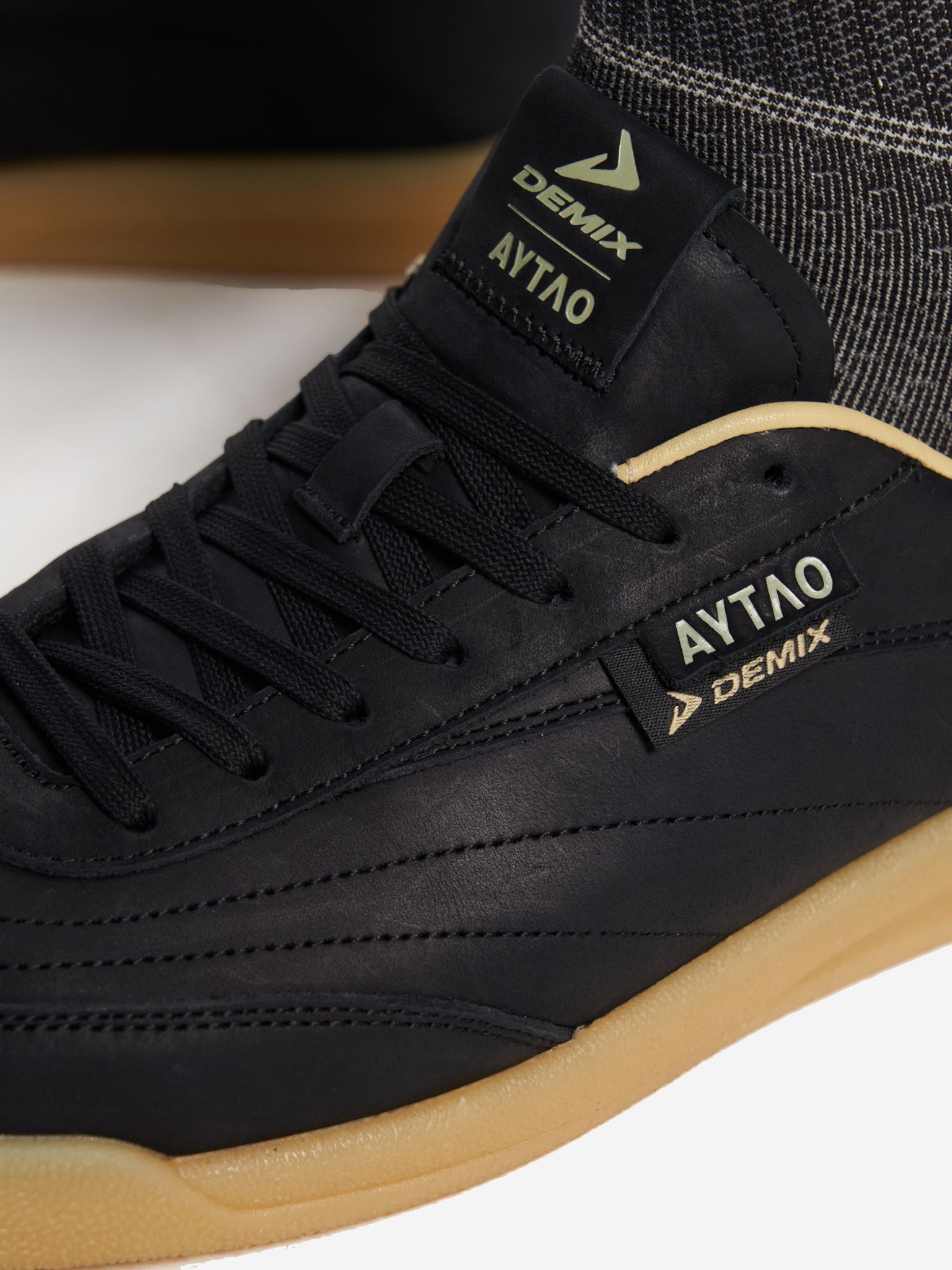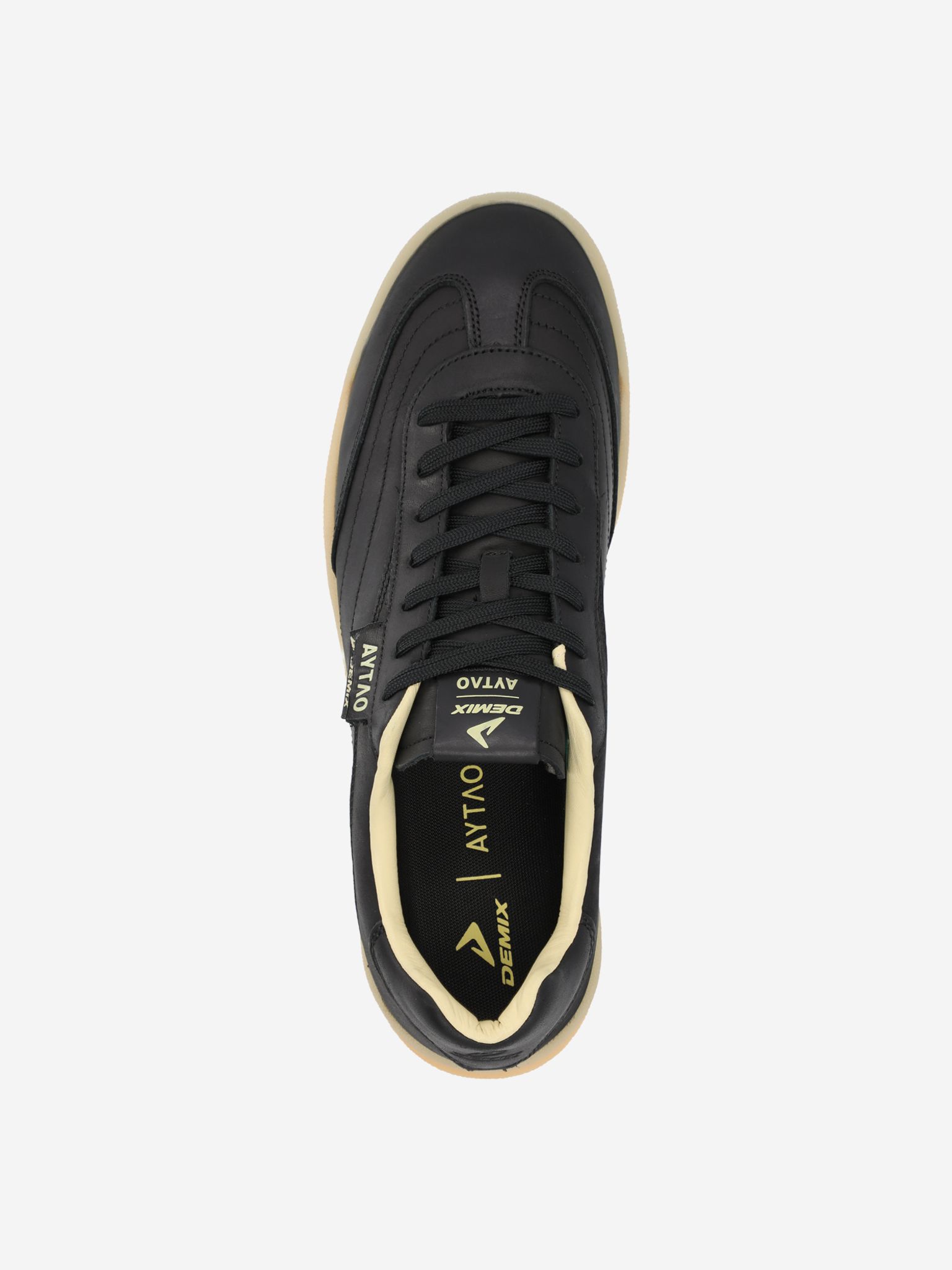 Мужские кеды Demix x AYTLO в эстетике 70-х. Верх из премиальной натуральной кожи, классическая шнуровка, резиновая подошва с рисунком, отсылающим к футбольным моделям.