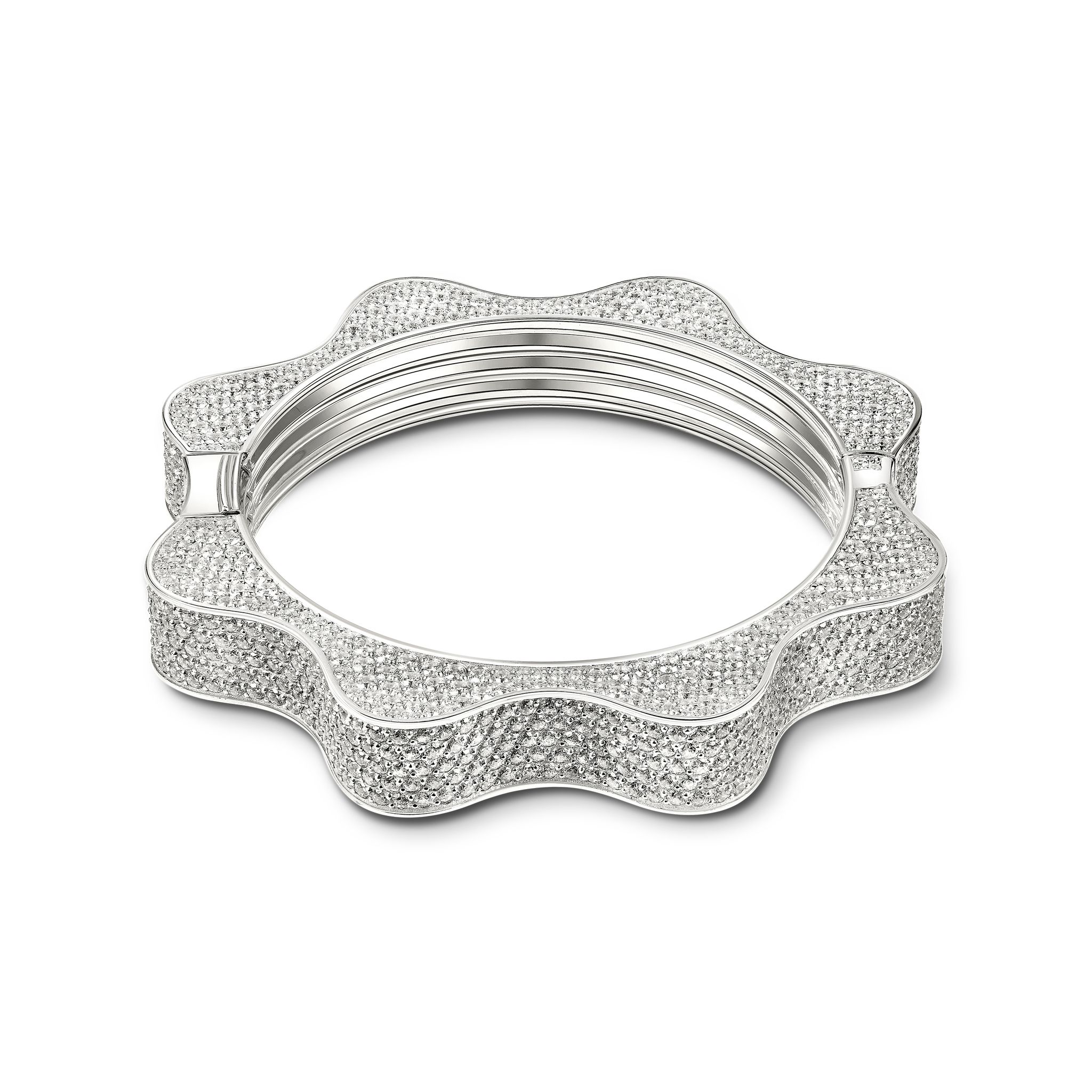 Провокационный дизайн, напоминающий деталь советской мясорубки. Массивный размер подчеркивает хрупкость запястья и несет в себе бунтарский дух.